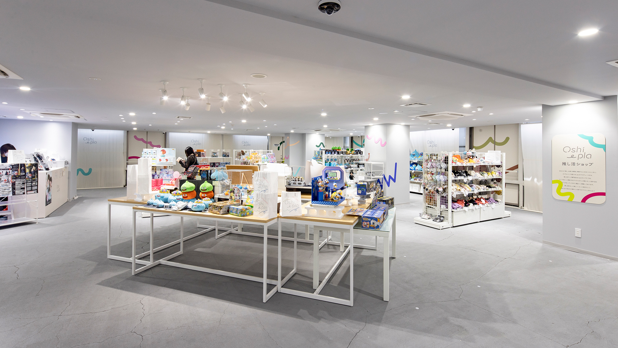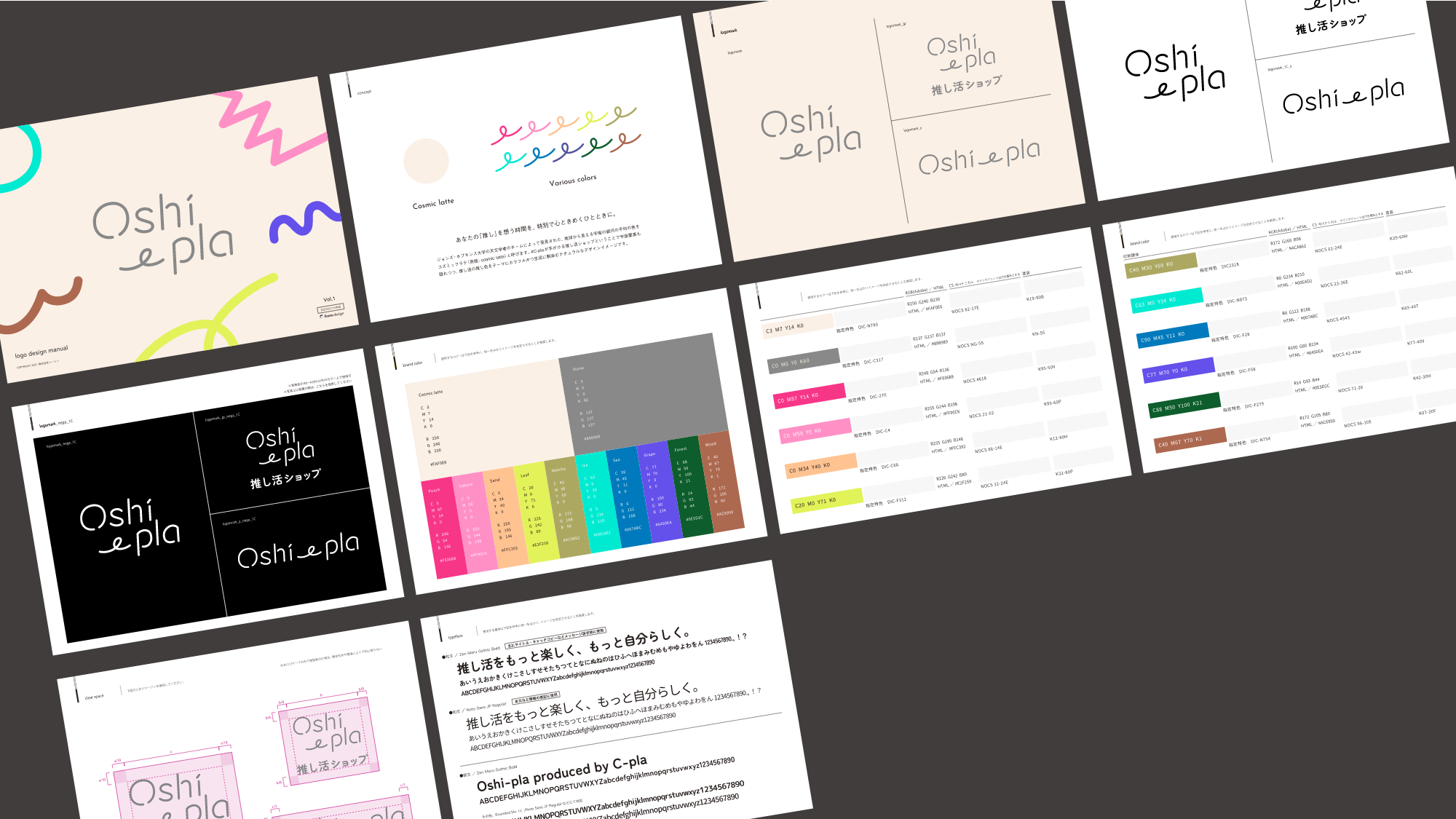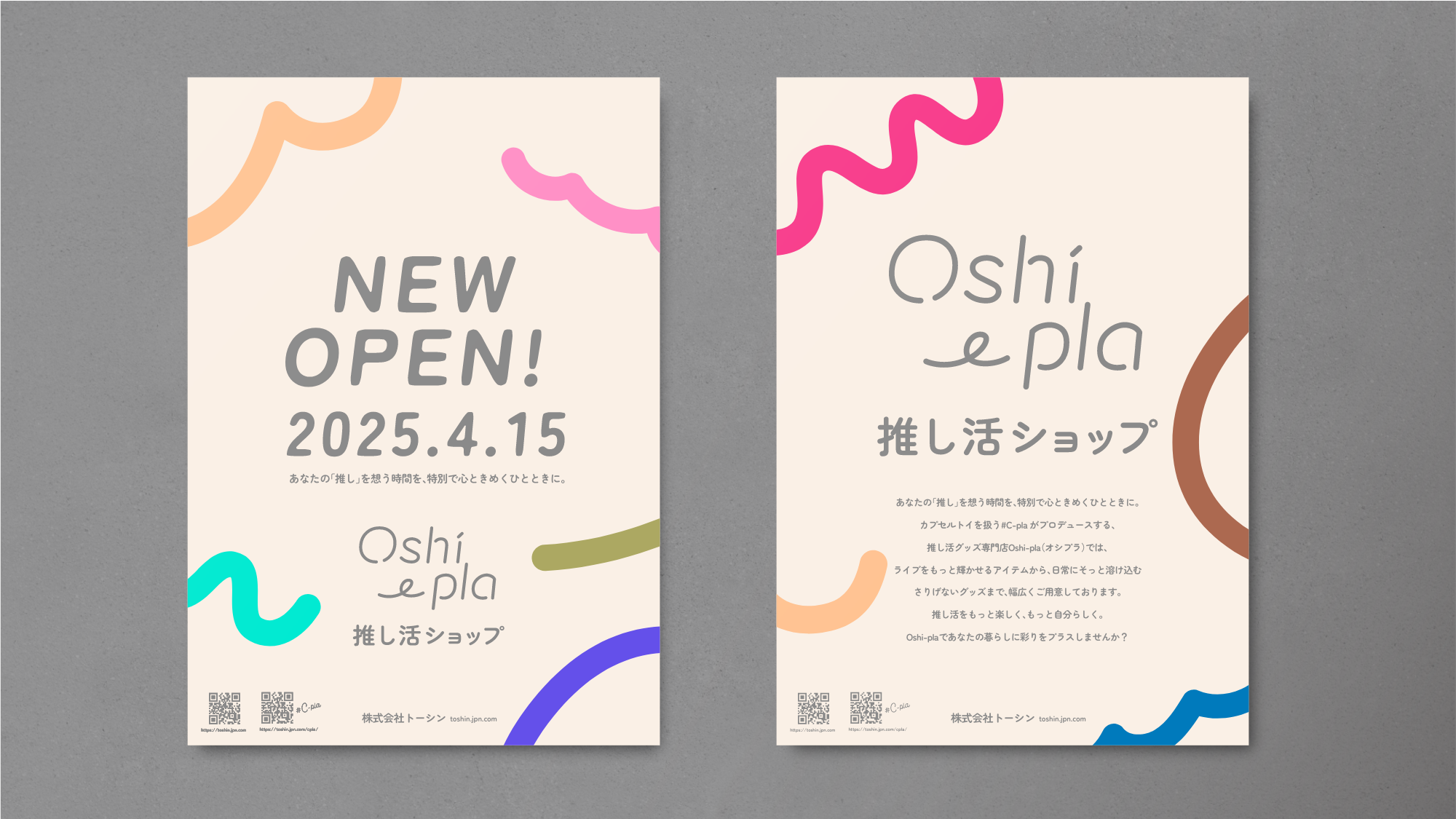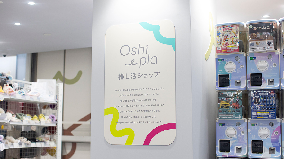 カプセルトイ専門店#C-plaが新たに「推し活」にスポットを当てた物販事業「推し活ショップOshi-pla」のロゴデザイン及び内装デザインを担当しました。ペンライトなどの気合いを入れたいライブアイテムから、推しとの日々を彩るアイテムまで、幅広く取り揃えている店舗の特徴から、推し色が見つけやすい白を基調としたベースカラーを設定し、ポップなデザインを展開。推し活ビギナー層にも受け入れられるよう、程よい店舗イメージを追求しました。#C-plaの世界観である宇宙要素をベースカラー※に隠しつつ、推し活の推し色をテーマにカラフルかつ、生活に馴染むナチュラルなデザインを表現しました。※ジョンズ・ホプキンス大学の天文学者のチームによって発見された、地球から見える宇宙の銀河の平均の色「コズミックラテ(英語: cosmic latte)」
