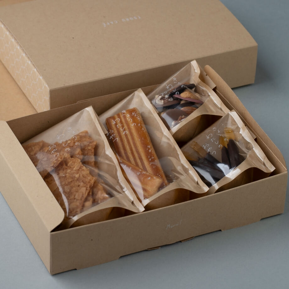 ギフトボックスは大小ある個包装がうまくアソートできるサイズに設計し、最大6種を詰め込むことができます。個包装からショッパーまで統一された、素朴で静かな凄みが漂う商品となりました。